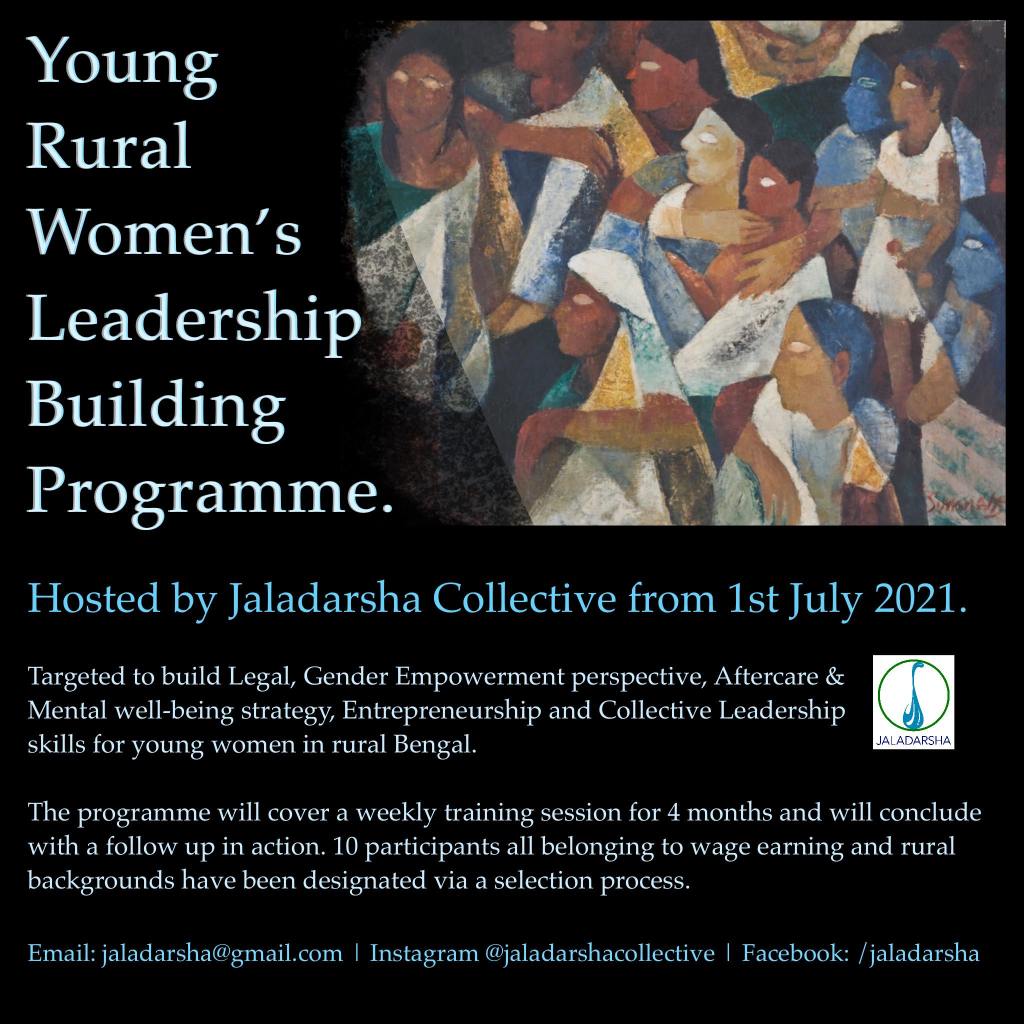 Jaladarsha Collective has started a 4-month long programme to build Legal, Gender Empowerment perspective, Aftercare & Mental well-being strategies Entrepreneurship, and Collective Leadership capabilities for 10 young women in rural Bengal.