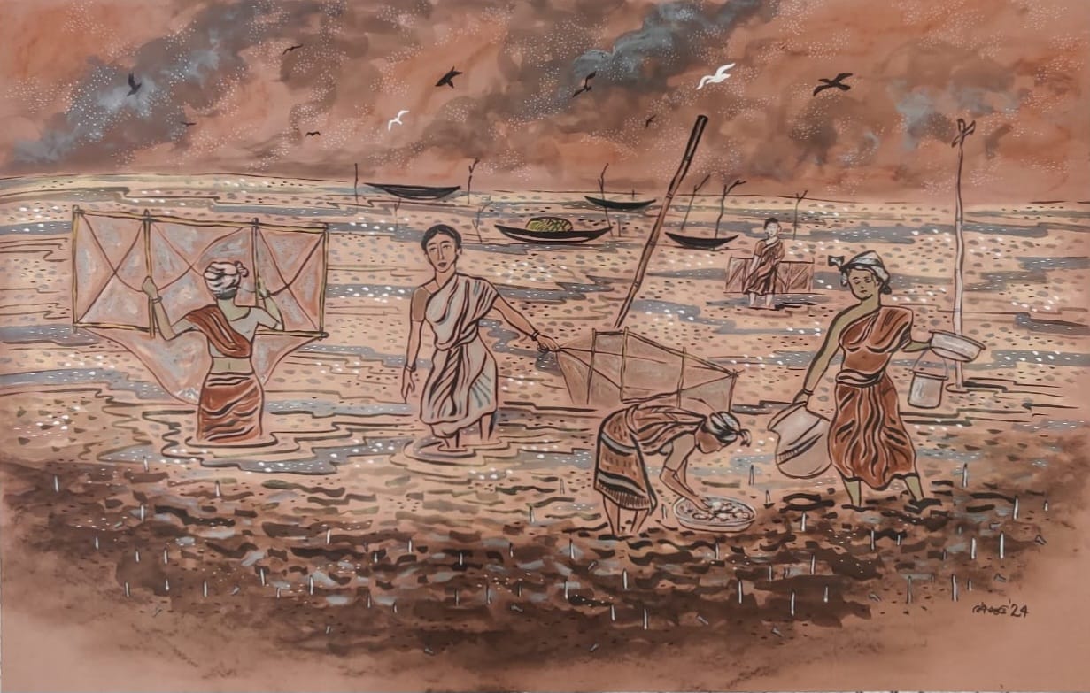 Interview conducted and translated by Pijush Dutta As our car navigated the winding, hilly roads, a rush of crisp, chilly wind carried the scent of freshly bloomed flowers to us. The journey from Dimapur to Chizami spanned five hours, with each turn in the road bringing a sense of excitement to everyone in the car.Continue reading “From the Sundarbans to Nagaland: Shrimati Munda’s Journey to the Biodiversity Festival”
